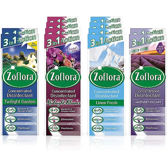 Zoflora Multi-Purpose Concentrated Antibacterial Disinfectant - Multi Surface Cleaning Solution - 12 X 120ml Bottles